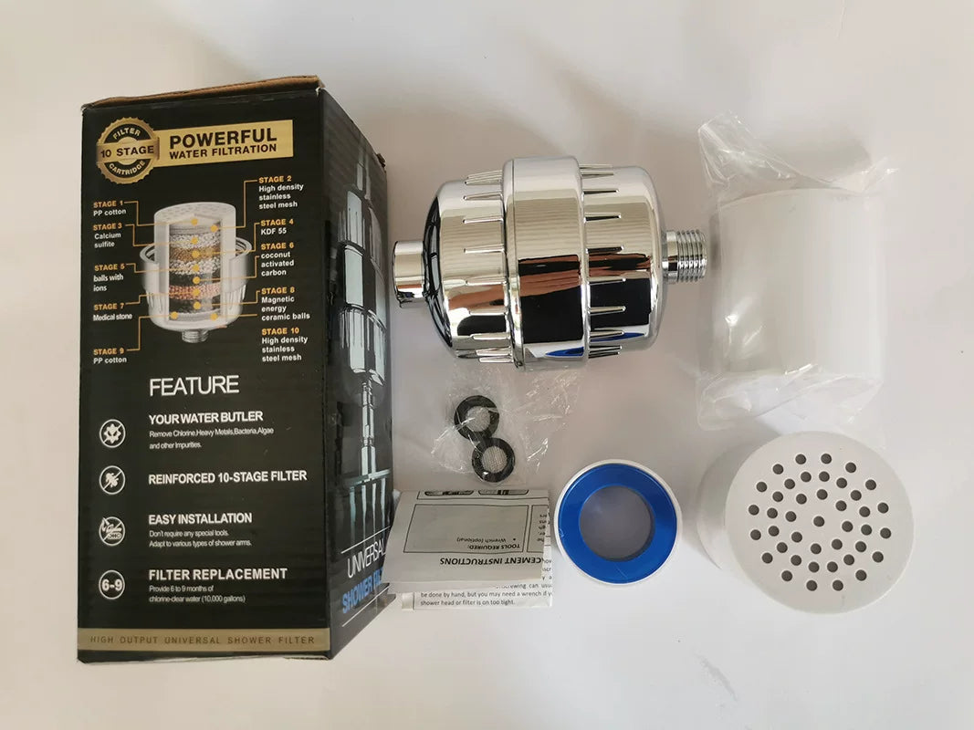 20-Stage Shower Head Filter-Shower Head Filter for Hard Water, Replaceable Cartridges, High Output Shower Water Filter for Removing Chlorine and fluoride, Polished Chrome
